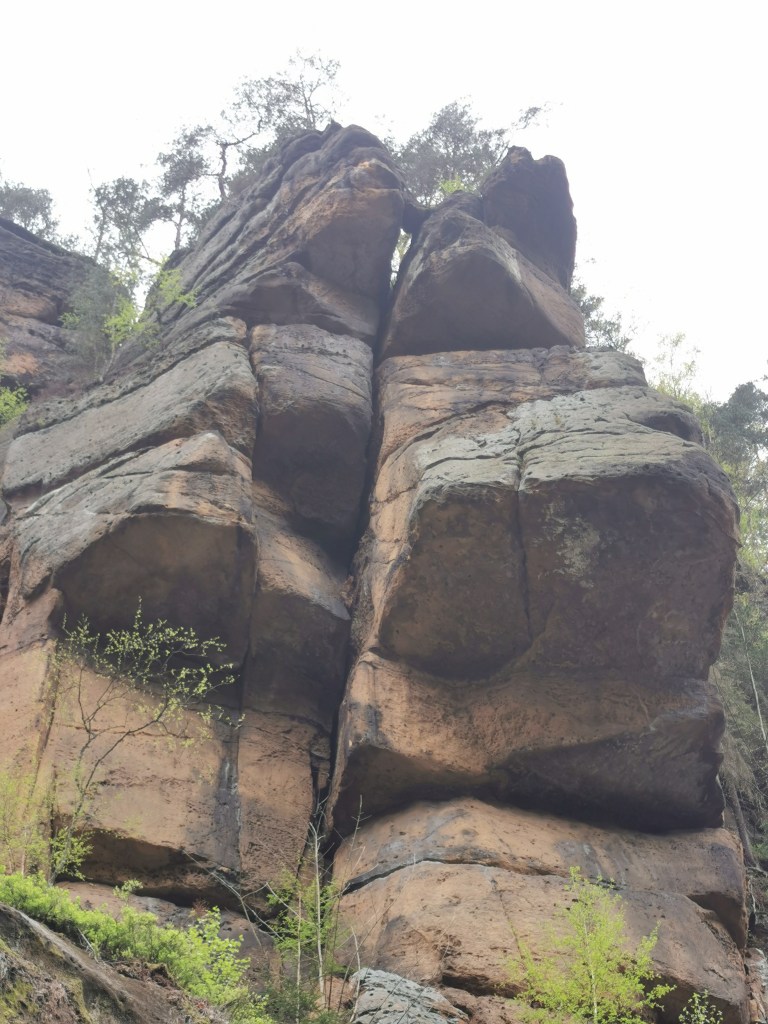 Dazwischen Birkenwälder, sich auffaltende Buchenblätter, Kiefern, deren Stämme in einem dunkleren Ton, tiefer gekerbt, prägnant mitten drin stehen. Zu meinem Erstaunen wachsen die Bäume an der senkrechten Felswand, sobald die Wurzeln einen Vorsprung finden oder sprießen wie Haare auf den Felslandschaften.
