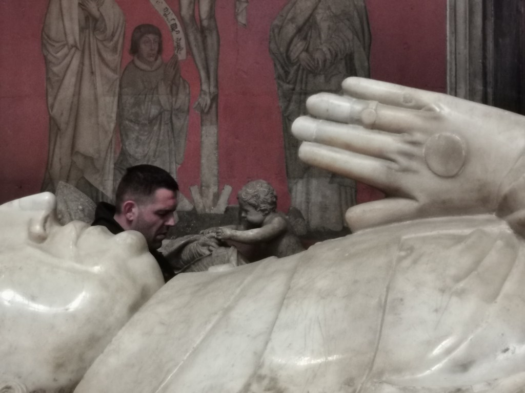 Der heilige Geist kommt mit dem Wind. Fegt und bläst, wie es sich gehört, den schweren Weihrauch aus den Kirchengemäuern. Die 800 Jahre alten Glasmosaike im Kölner Dom funkeln in den zwischendurch aufscheinenden Strahlen. Die Gerhard Richter Quadrate auch. Drei Betende gefallen mir. Der wahrhaftig Gegenwärtige. Der verstorben Versteinerte. Die aufsteigend ins Nichts greifenden Engel auch.